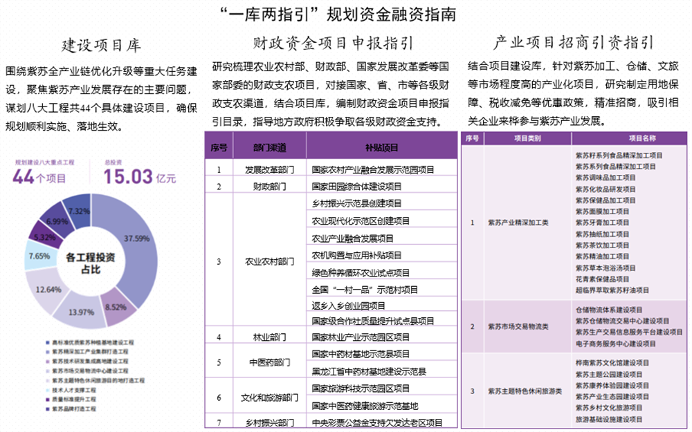 為貫徹落實(shí)習(xí)近平總書(shū)記關(guān)于做好“土特產(chǎn)”文章重要論述,結(jié)合樺南縣紫蘇產(chǎn)業(yè)發(fā)展情況,規(guī)劃編制組研究提出特色產(chǎn)業(yè)發(fā)展路徑和發(fā)展重點(diǎn),探索提出“小品種——大產(chǎn)業(yè)——大經(jīng)濟(jì)”的特色產(chǎn)業(yè)振興之路。圍繞縣域特色產(chǎn)業(yè)發(fā)展規(guī)劃的編制難點(diǎn)和規(guī)劃落地難的痛點(diǎn),積極探索規(guī)劃編制思路和方法,創(chuàng)新運(yùn)用網(wǎng)絡(luò)“爬蟲(chóng)”技術(shù)挖掘信息,切實(shí)解決小品種、小產(chǎn)業(yè)缺乏數(shù)據(jù)資料的難題;繪制紫蘇產(chǎn)業(yè)全景圖譜,有效克服對(duì)產(chǎn)業(yè)認(rèn)識(shí)不足的難題,提出食品、保健品和藥品“三品”開(kāi)發(fā)方向;制定“一庫(kù)兩指引(即建設(shè)項(xiàng)目庫(kù)、財(cái)政資金項(xiàng)目申報(bào)指引、產(chǎn)業(yè)項(xiàng)目招商引資指引)”融資招商指南,有效助推解決產(chǎn)業(yè)規(guī)劃落地難的痛點(diǎn);完善規(guī)劃成果表達(dá)方式,有效擴(kuò)大規(guī)劃影響力。近年來(lái),樺南縣按照規(guī)劃制定的目標(biāo)方向,加快推進(jìn)各項(xiàng)任務(wù)舉措落地生效,累計(jì)爭(zhēng)取各級(jí)財(cái)政資金支持約2億元,招商引資規(guī)模達(dá)2億元,紫蘇產(chǎn)業(yè)“一核、兩區(qū)、多點(diǎn)”發(fā)展格局已初步形成,紫蘇全產(chǎn)業(yè)鏈持續(xù)優(yōu)化升級(jí),成為樺南縣域經(jīng)濟(jì)發(fā)展的新引擎,帶動(dòng)了農(nóng)民增收致富。