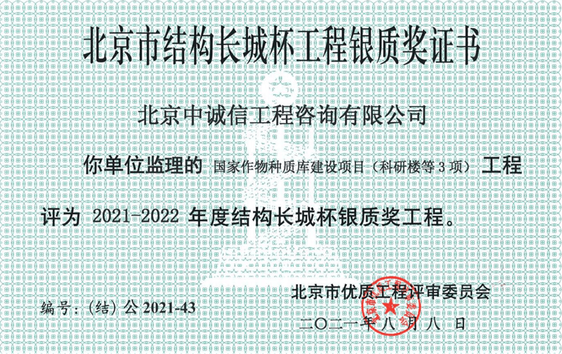 本工程于2021年8月8日被北京市優(yōu)質(zhì)工程評(píng)審委員會(huì)評(píng)定為“北京市建筑(結(jié)構(gòu))長城杯”工程!投入使用一年多來,運(yùn)行穩(wěn)定,效果良好,得到使用單位的高度評(píng)價(jià)。